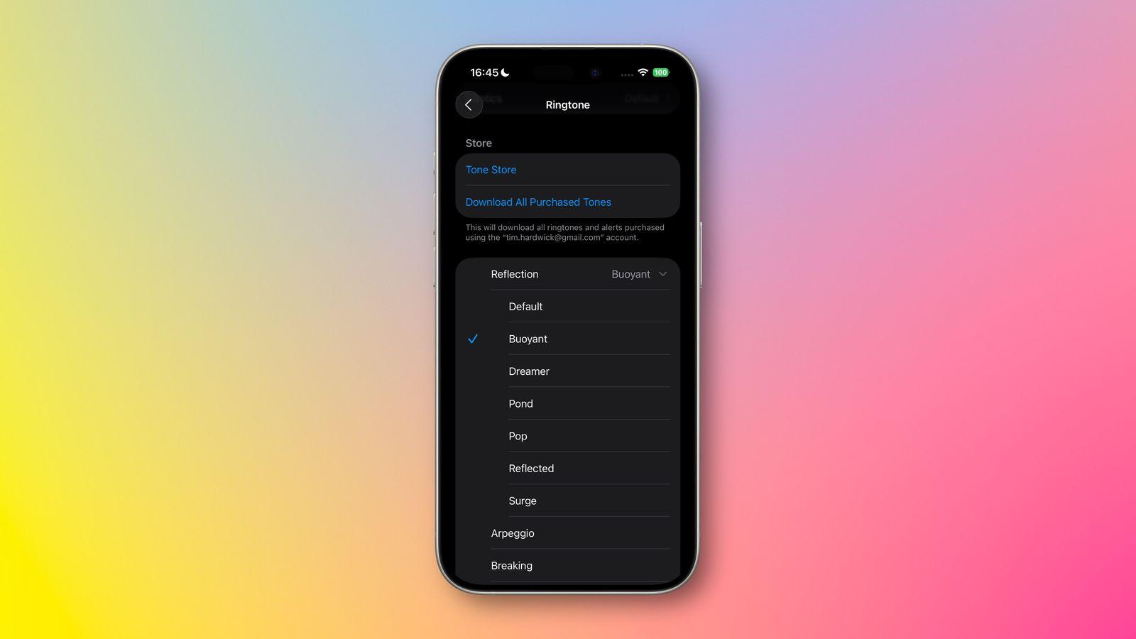 Per ascoltarle e impostarle come suoneria o sveglia, vai su Impostazioni ➝ Suoni e feedback aptico ➝ Suoneria, poi tocca la freccia accanto a “Reflection” per visualizzare tutte le varianti disponibili.